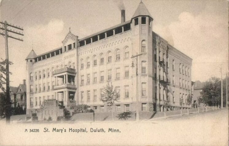 This postcard, published by the Rotograph Company of New York City and printed in Germany, shows St. Mary’s Hospital in Duluth. The card has no postmark, but Rotograph’s postcard operation ran from 1904 to 1911. (more…)