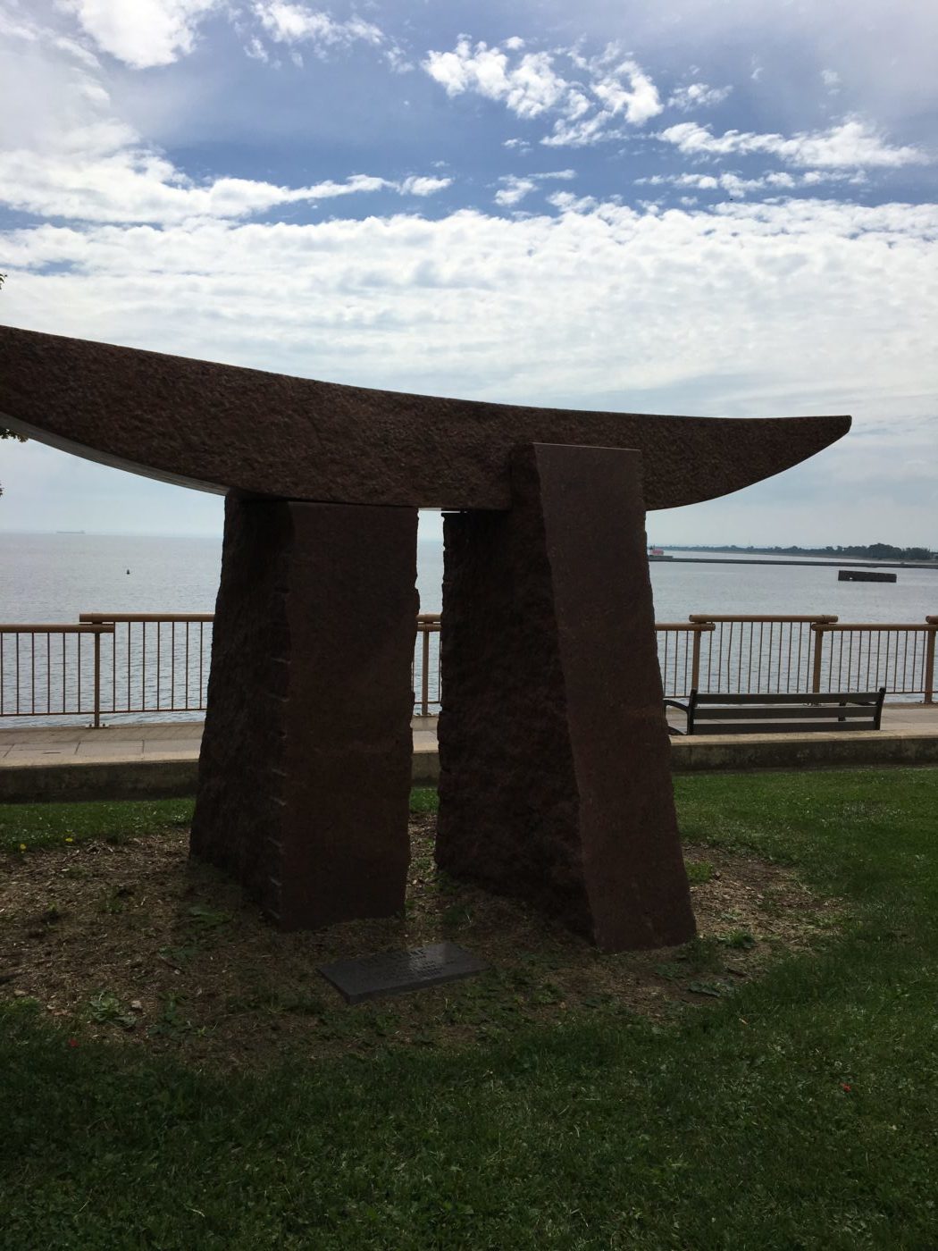 The sculpture, created by Kenneth Johansson, is comprised of red granite.