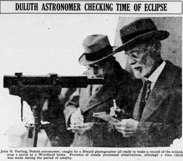 Duluth was in the path of totality for a solar eclipse 100 years ago. Unfortunately, it was cloudy in the city on Jan. 24, 1925. (more…)