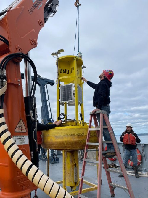 There were undergraduate and graduate students on board to help with this project, in which one of the buoys needed to be brought in for repairs.
