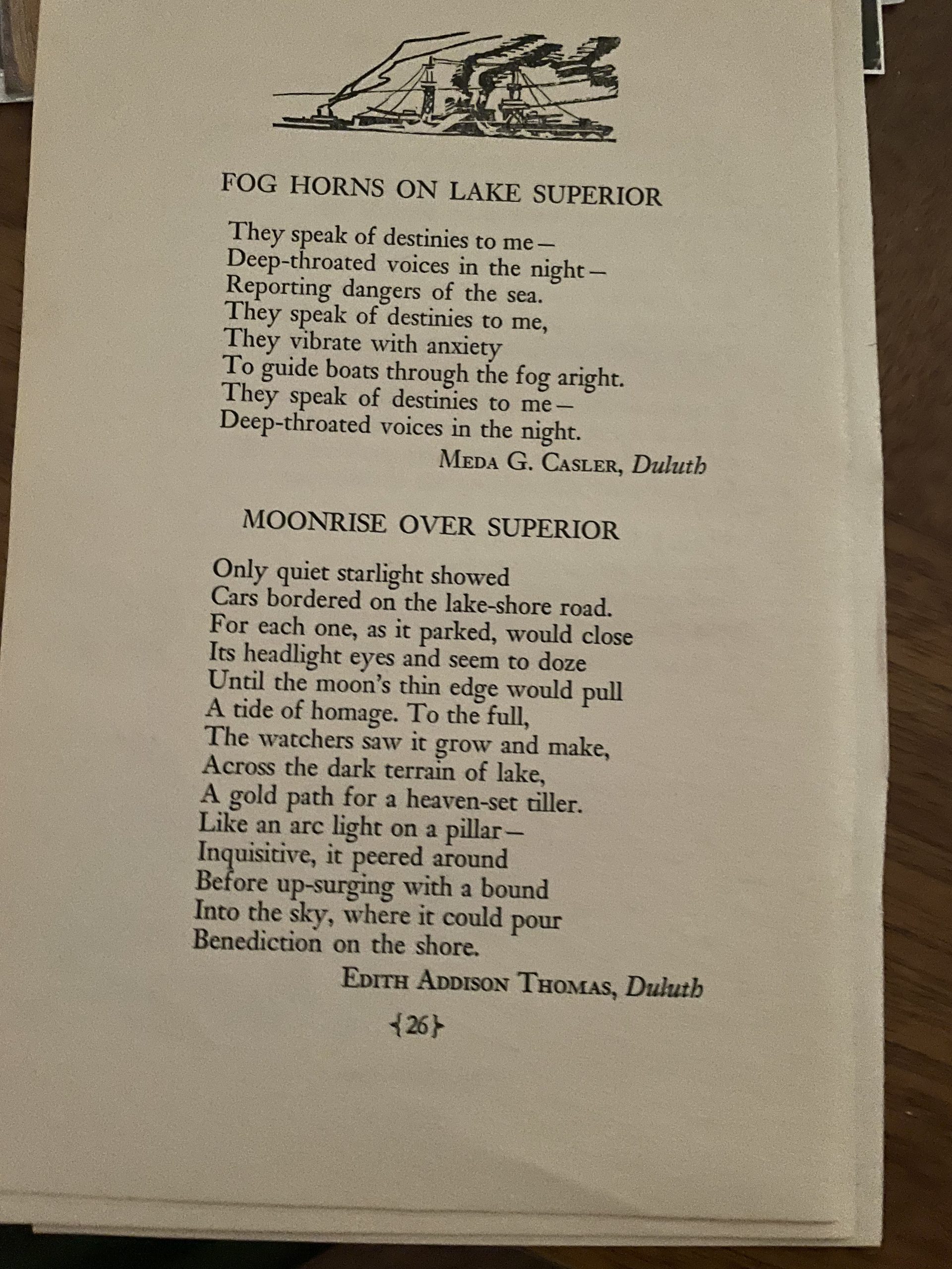 I am reconstructing the Poetry History of the Arrowhead as I prepare to teach my Minnesota Writers class. Today, I want to ask you whether you know anything about Meda Casler or Edith Addison Thomas. (more…)