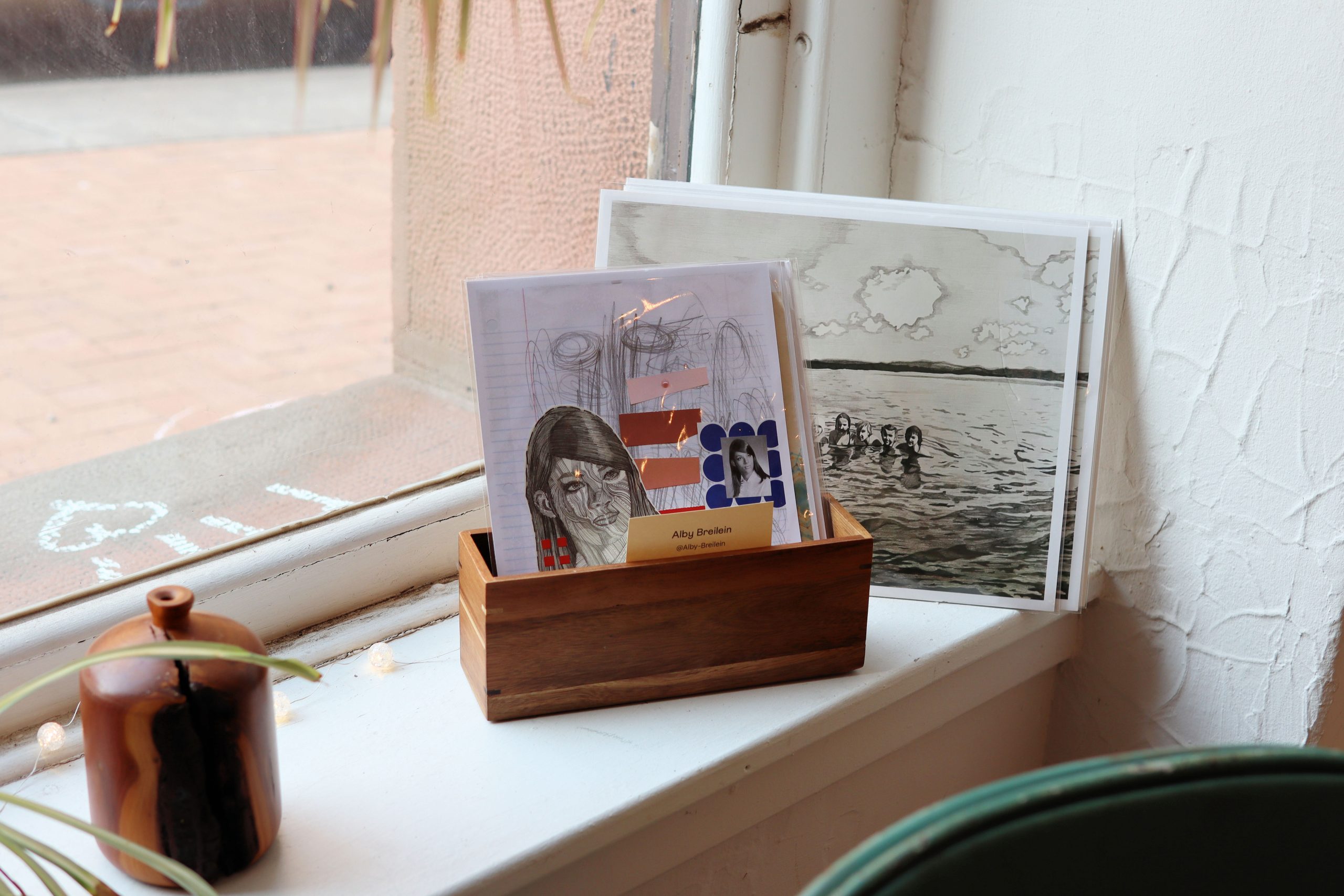 Inspired by time spent sifting through family albums, Alex (Alby) Breilein creates photo-drawing collages from old photographs. The drawings are from snapshots taken before Breilein was born or formed memories. “I never knew them, yet they are a part of me,” she says of her grandparents’ pictures. Her artwork can be viewed at Wussow’s Concert Cafe throughout the month of June. Below is a recent interview with Breilein, as well as photos taken at her recent exhibit at Hemlocks Leatherworks: