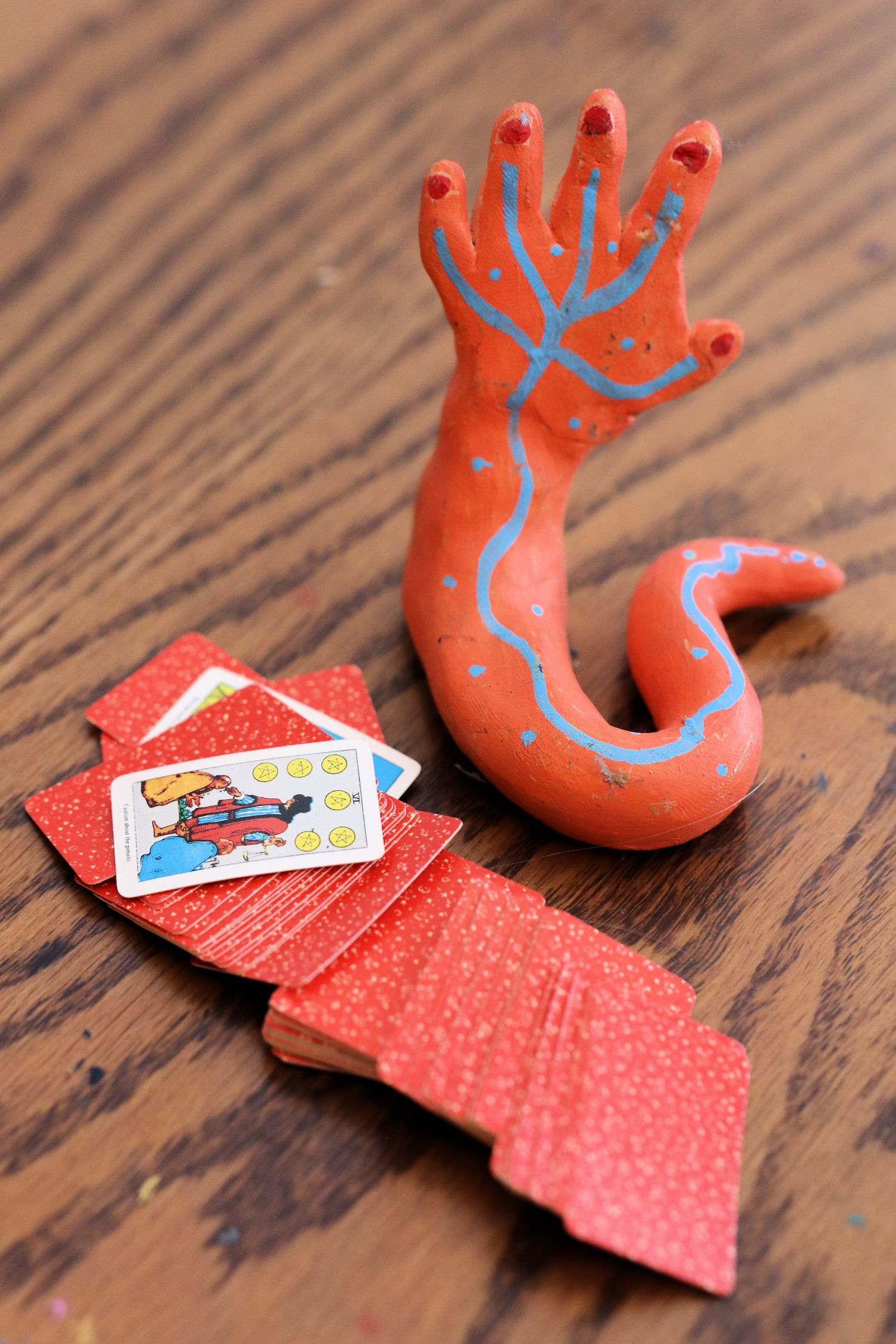I work with a wide range of mediums as of right now and I am always open to learning more. So far I work with surreal or abstract acrylic painting, papier-mâché puppet-head making, wool felting, organ playing and music production, clay sculpting for puppets or masks, stained glass, poetry, video poetry, video production, stop motion and general short-story writing.