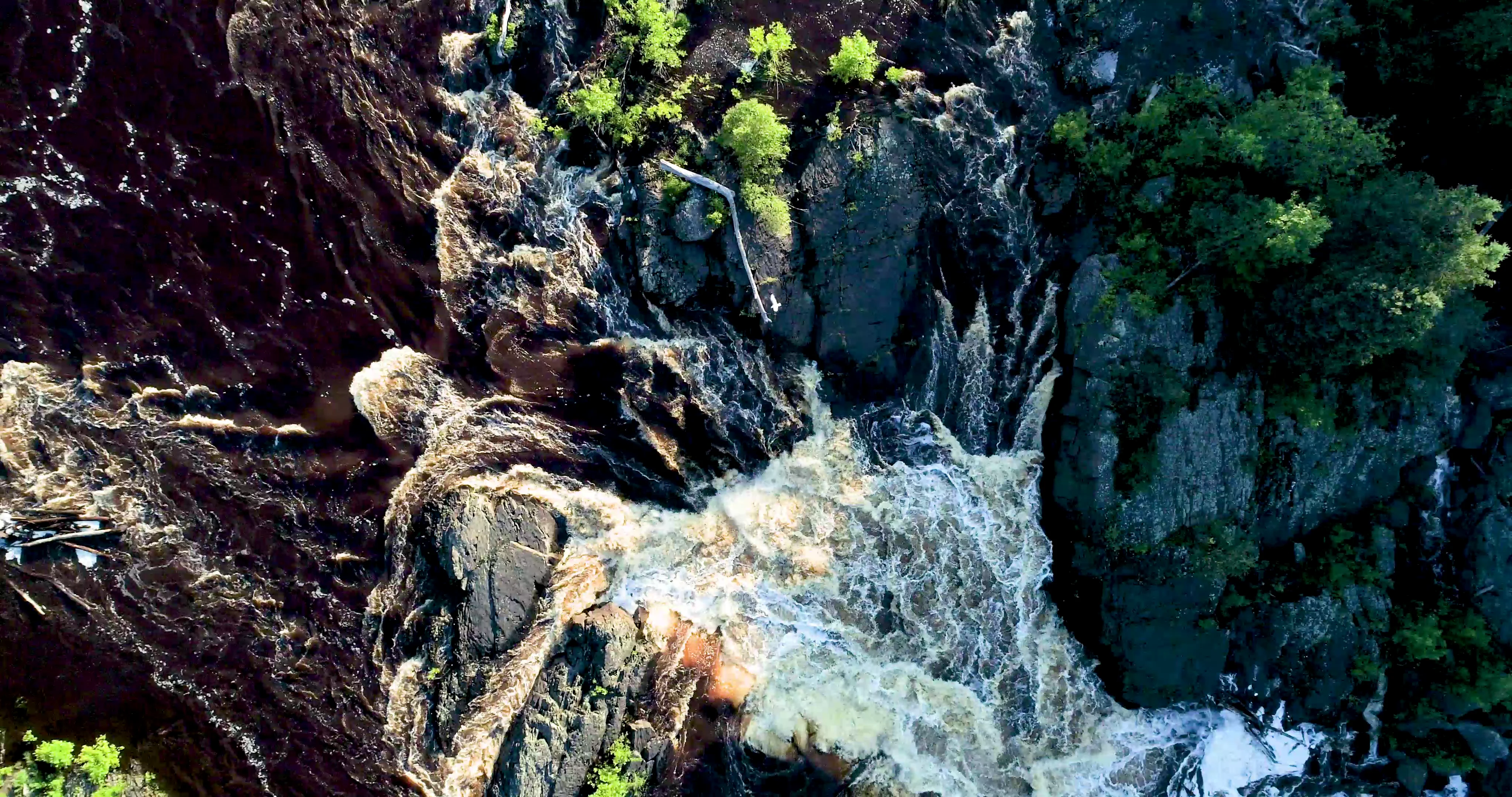 “The rivers were RAGING!” the video description on Vimeo notes. “It was so loud, you couldn’t hear the drones 10 feet away from you. What amazing sights to behold though — the St. Louis River and Thompson Reservoir were busting at the banks to the point that even the large inlet to Lake Superior was flooding, and creating some amazing rapids!”