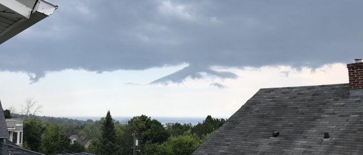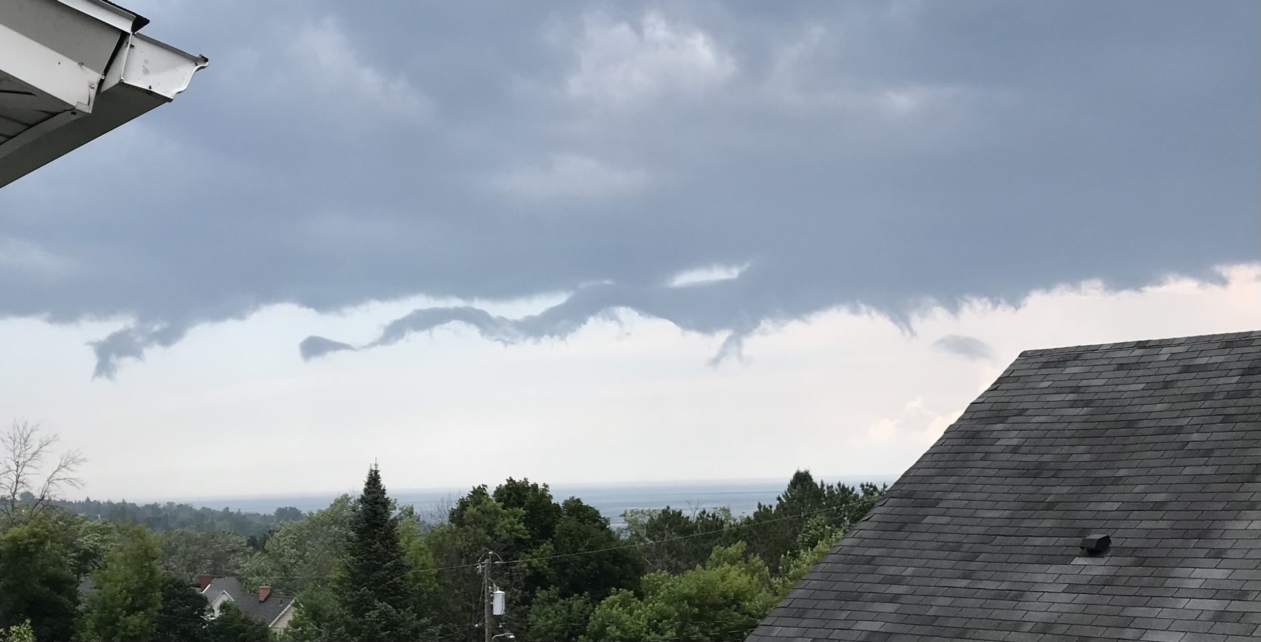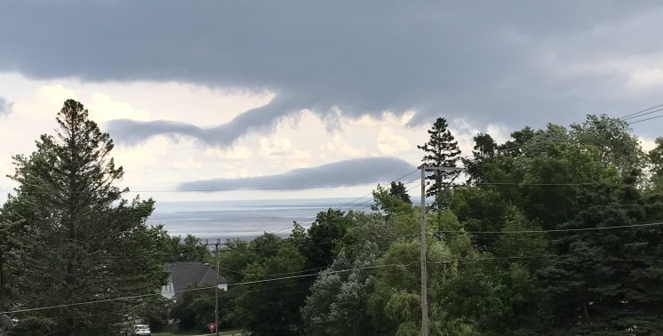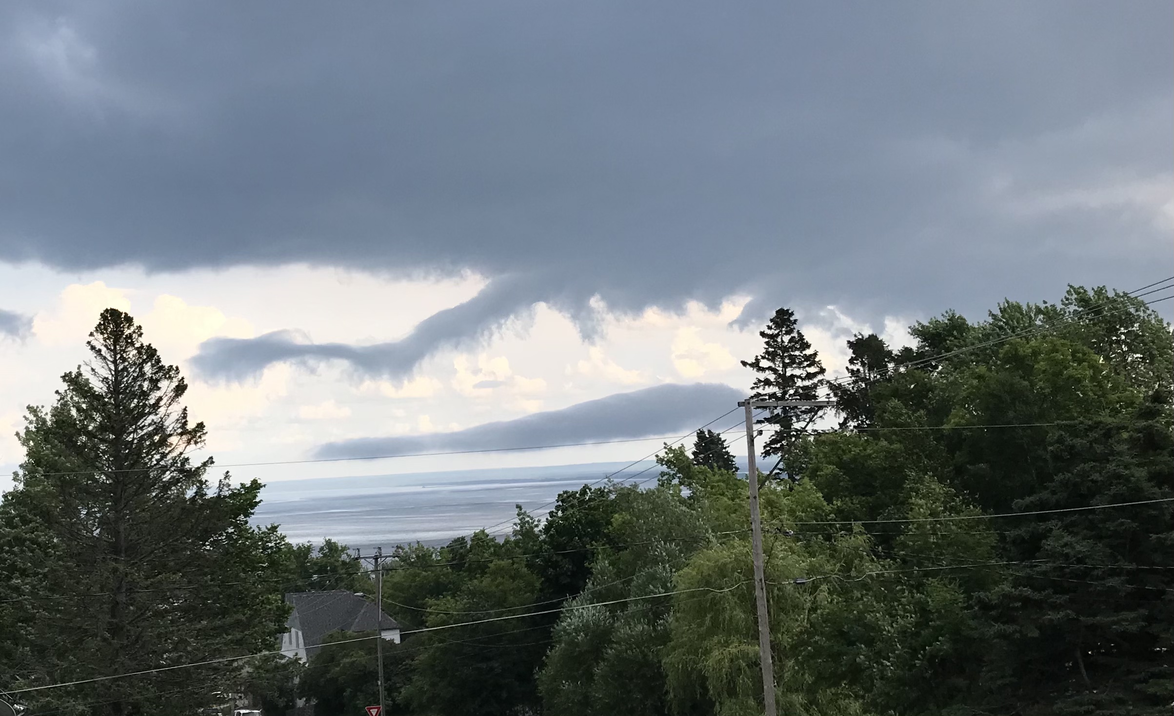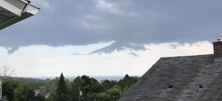Images taken over the span of a few minutes as dark rollers split off the main cloud bank like sideways funnel clouds, conflicting air masses in turbulence. (This kind of thing scared the heck out of me when I first moved here.)