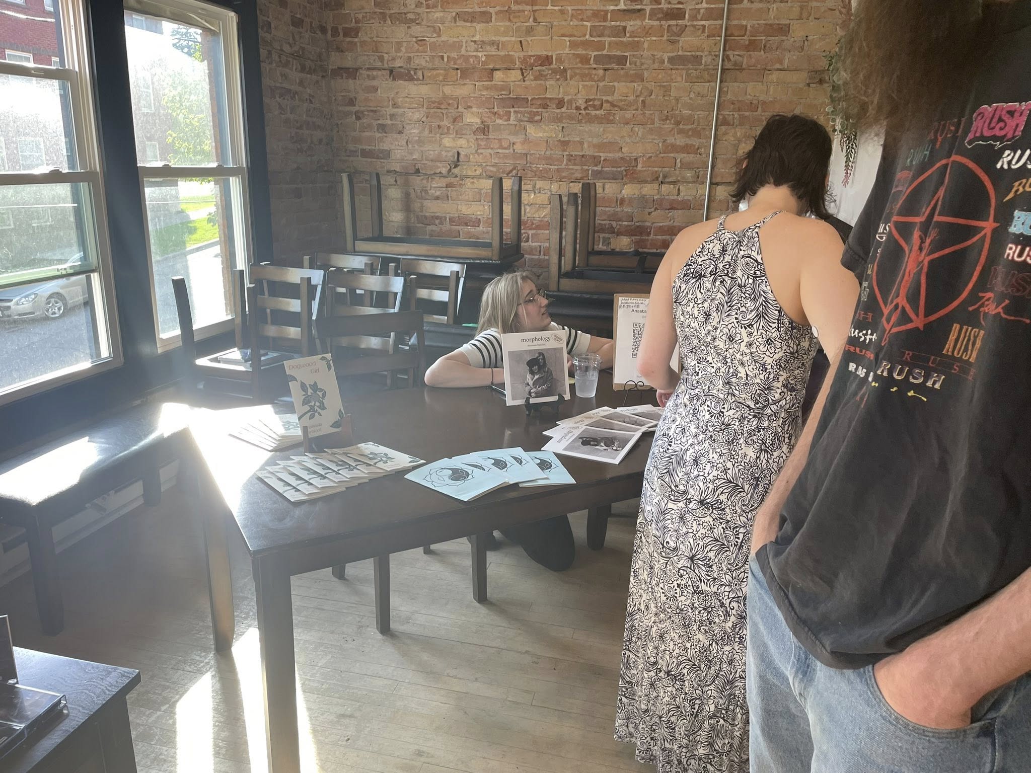 But the event included more — poems by Anastasia Bamford, copies and art from the Murder Your Darlings collection, and tables for poetry-making, zine-making and more. It was a great evening and I look forward to more.